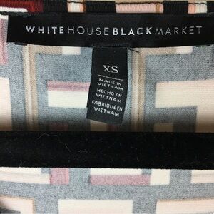 White House Black Market WHBM Tunic Dress Black Red Cream Geo 3/4 Sleeve XS