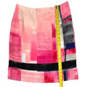 Add a bold pop of color to your wardrobe with this eye-catching White House Black Market skirt. Features a vivid abstract watercolor print in pink, red, navy, and black tones. Fully lined with a side zip closure and small front slit for ease of movement. A stylish statement piece for the office or an elevated casual look.