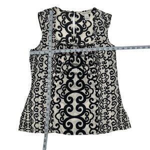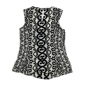 White House Black Market White Black Swirl Silk Sleeveless Blouse Size S Women's