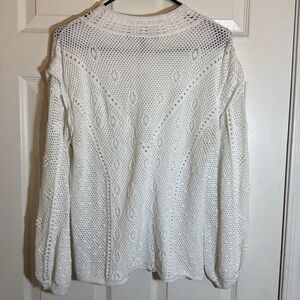 White House Black Market White Crochet Pointelle Pullover The Summit Top