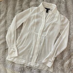 White House Black Market White Sheer Button Down Tunic Blouse