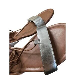White House Black Market White Silver Lace Up Open Toe Strappy Flats Size 7.5