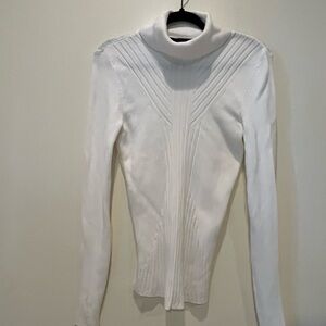 White House Black Market White Turtleneck Sweater with Ribbed Design