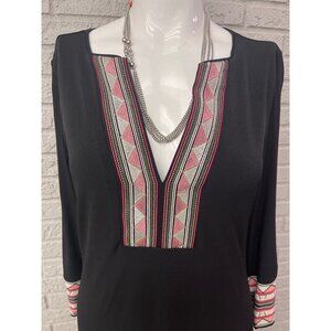 • White House Black Market Women Aztec Embroidery Trim Long Sleeve Shift Dress Size S
