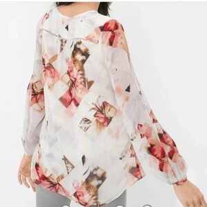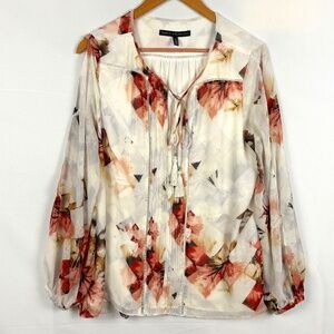 White House Black Market Women Long Split Sleeve Blouse Sz 12 Romantic Date