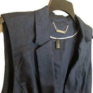 White House Black Market Womens 10 Blue Linen Blend Sleeveless One-Button Blazer