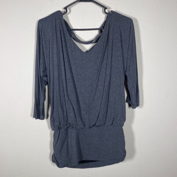 White House Black Market Women's 3/4 Sleeve Banded Bottom Gray Top S Cross Back!