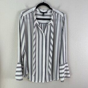 White House Black Market Womens 8 Shirt Striped Button Up Tie Neck Blouse