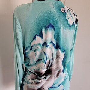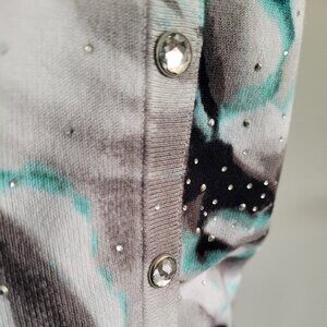 White House Black Market Women's Aqua Floral Embellished Button Up Cardigan (XL)