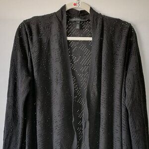 White House Black Market Women's Black Open Front Trim Shrug Sweater Size Small