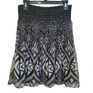 White House Black Market Women's Black & White Geometric Print Poly Georgette Lined Above the Knee Skirt