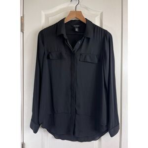 White House Black Market Women's Button Up Long Sleeve Blouse Black Size 4