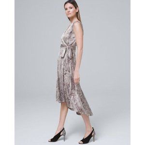 White House Black Market Women's Dress 4 Wrap Midi Snake Gray Sleeveless Hi Low