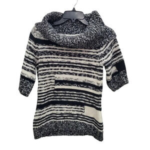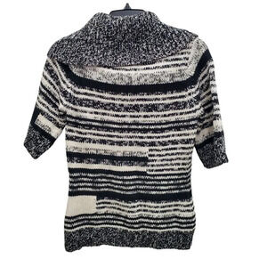White House Black Market Women's Geo Stripe Fold Over Neck Chunky SS Sweater S