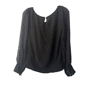 White House Black Market Womens Silk Romantic Blouse Velvet Dot Chiffon Size 10