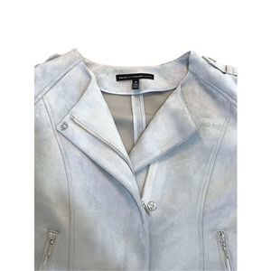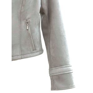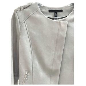White House Black Market Women's Gray Faux-Suede Moto Jacket Size Medium