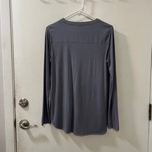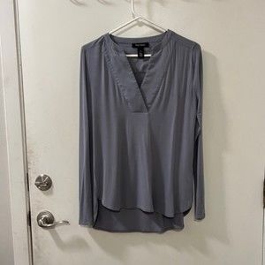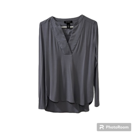White House Black Market Womens Gray VNeck Hi Low Hem LS Top Soft & Satiny Sz XS