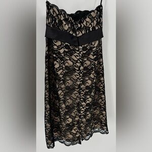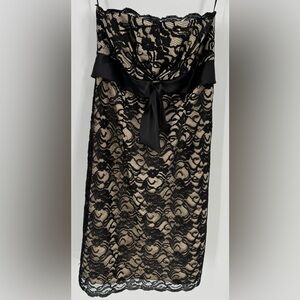 White House Black Market Women's Lace Overlay Pencil Strapless Front Bow Party Date Night Dress