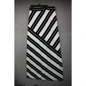 This is a White House Black Market Women's Maxi Skirt that is a size Medium. It is 90% Rayon and 10% Spandex. It has an elastic waistline and has a lot of stretch. The waist measures 31.5" and the length is 45". It is lined half-way down. It has long slits on each side. Very nice skirt in great condition.