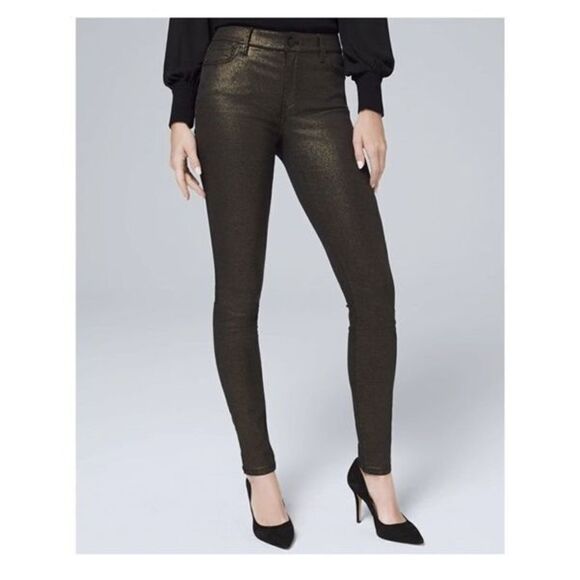 White House Black Market Women's Metallic Gold Foil Skinny Ankle Jeans Size 0