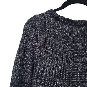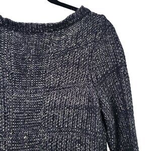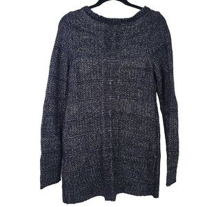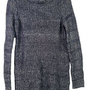 White House Black Market Women's Navy, Silver Metallic Long Tunic Sweater Size S