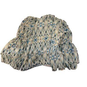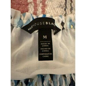 White House Black Market Womens Off-Shoulder Blouse M Blue & White Abstract Art