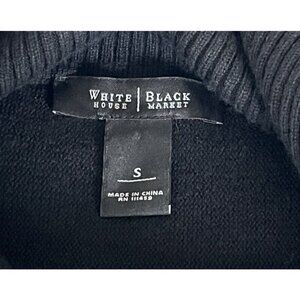 White House Black Market Womens Oversize S Black Side Button Asym Collar Sweater