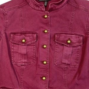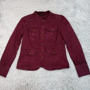 White House Black Market Womens Shirt Red 6 Button Up Utility Military Top