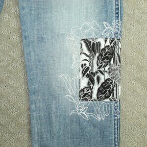White House Black Market Women's Size 00 Straight Crop Floral Patch Embroidered