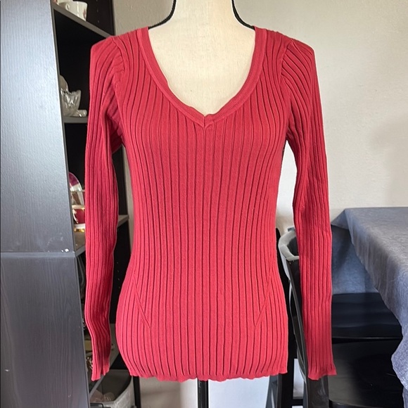 White House Black Market Women’s Size Large Ribbed Burnt Orange V Neck Sweater