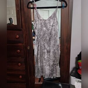 Embrace elegance with this stylish snake print slip dress. Perfect for a chic and comfortable look.