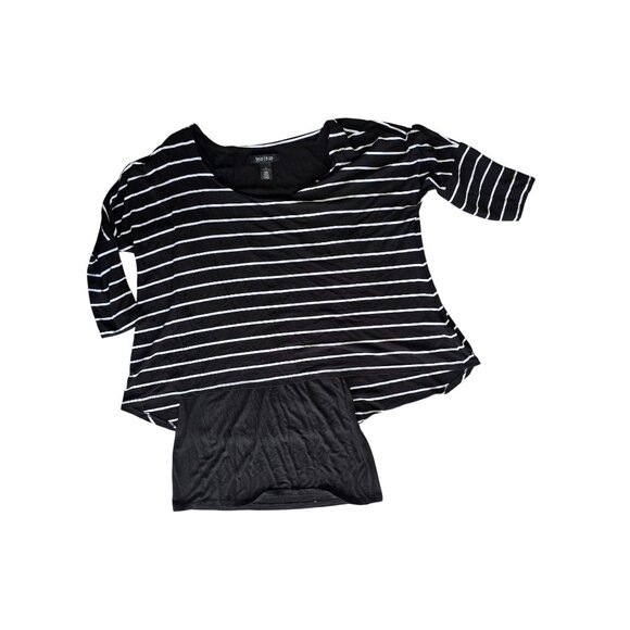 White House Black Market Womens Striped 3/4 Sleeve Black & White Tunic Top M