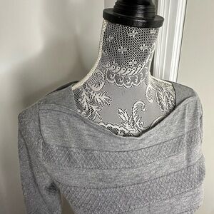 White House Black Market Women’s Tunic Small Striped Gray Textured. Boat Neck.
