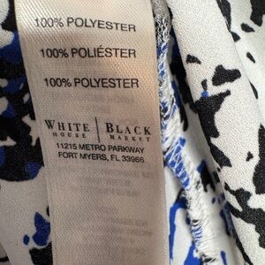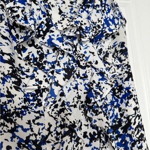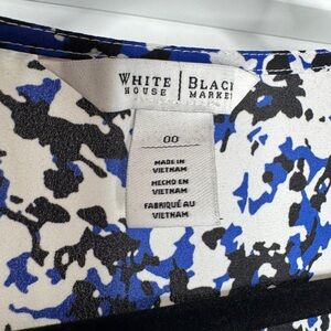 White House Black Market Women’s White, Black, and Blue Blouse w/ Ruffle, Sz 00 is in excellent preowned condition.