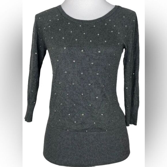 White House Black Market XS Soft Sweater: 3/4 sleeves and rhinestones on front