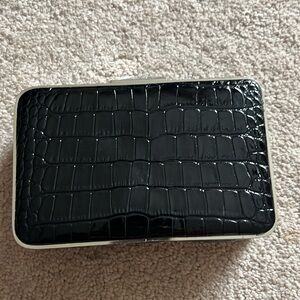 White House Black Market black snakeskin mini hard case clutch