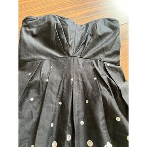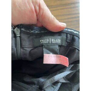 White House Black Market black white strapless dress size 0. Zips in back. Lined. Pit to pit measures approximately 14”. Waist measures approximately 12.34”. Top to hem measures approximately 29.5”. Has full skirt. Made in Vietnam. Has been dry cleaned. Good pre-owned condition.