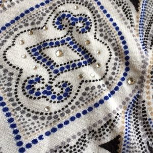 Supersoft Printed cardigan with crystal snaps and sporadically decorative bling. Colors: Black, white ,charcoal, royal blue & taupe