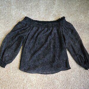 White House Black Market blouse black/white polka dots off the shoulder size Med