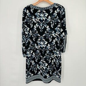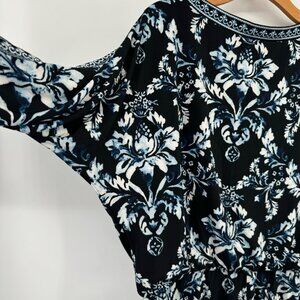 White House Black Market blue Floral Print Dress womens size large open sleeve