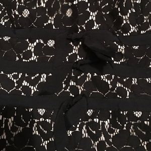 Black lace dress. This dress is so beautiful and flattering on. Only worn a few times and very comfortable. Great for the office with a cardigan, a wedding or a night out! Slight discoloring on inside, but not visible at all while wearing the dress.