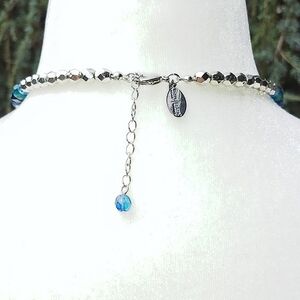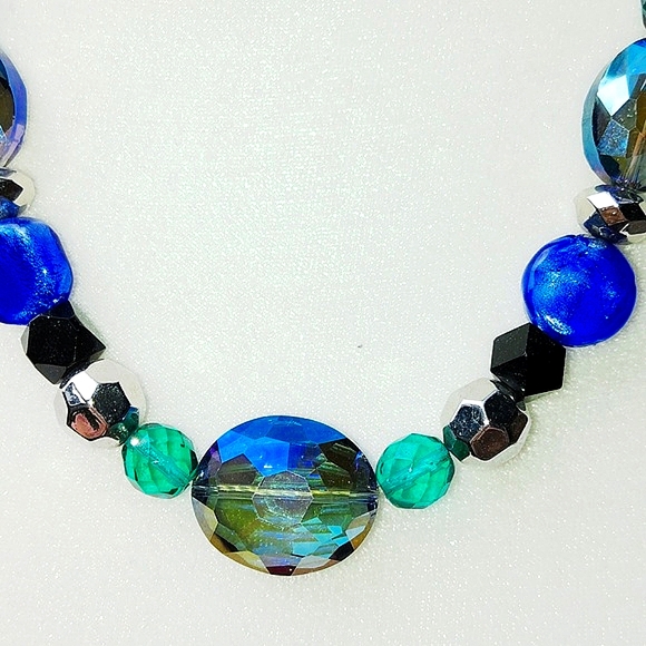 Graduated with blue, green, black, and silver faceted glass AB beads