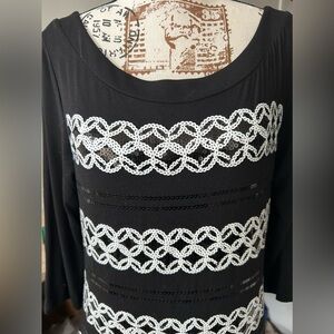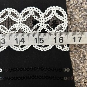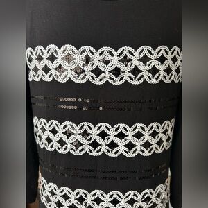 WHBM fitted little black lined dress with fun white and black sequins design. Pre-owned and good condition dress. 3/4 sleeves.