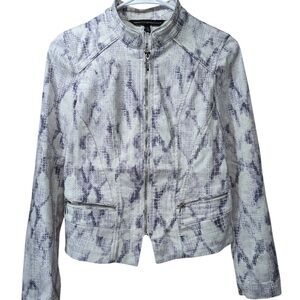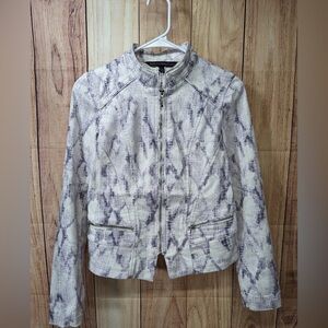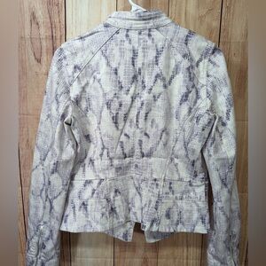 White House Black Market lt purple & ecru snakeskin print Moto Jacket, Size 2