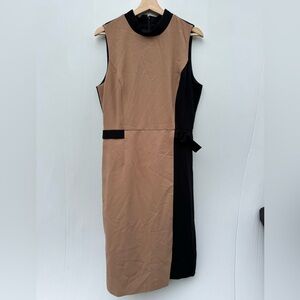 🆕 White House Black Market mock neck Tan and Black Asymmetrical Dress sz 14 NWT