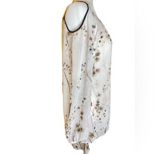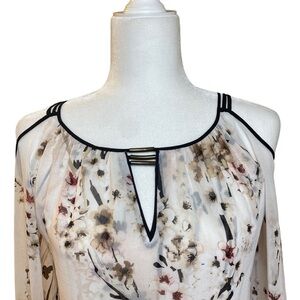 Layered chiffon type fabric and cherry blossoms floral pattern give it a feminine touch.