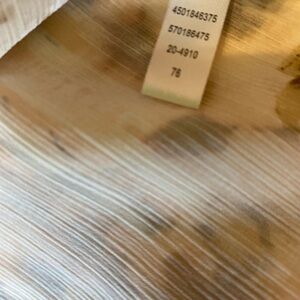 Long balloon sleeves and round neckline with bronze tubing detail.