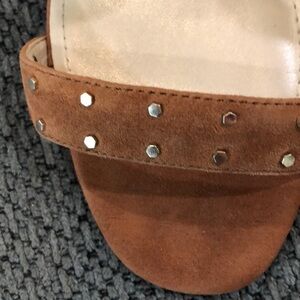 White House Black Market sandals. Stacked heel. Studded suede. Size 8.5.