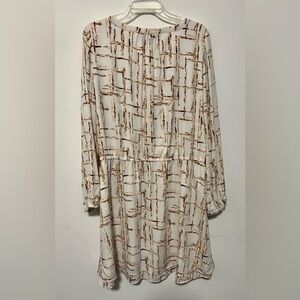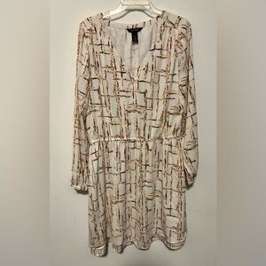 White House Black Market size 14 long sleeve Cream Brown Geometric Dress