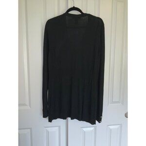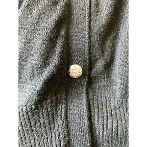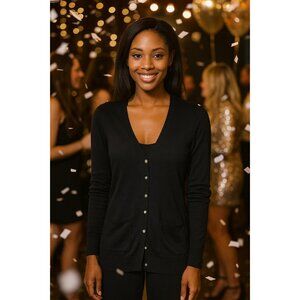 This elegant cardigan from White House Black Market features a sleek black design with silver snap buttons, perfect for adding a touch of sophistication to any outfit. Comfortable and stylish, it's ideal for both casual and professional settings.